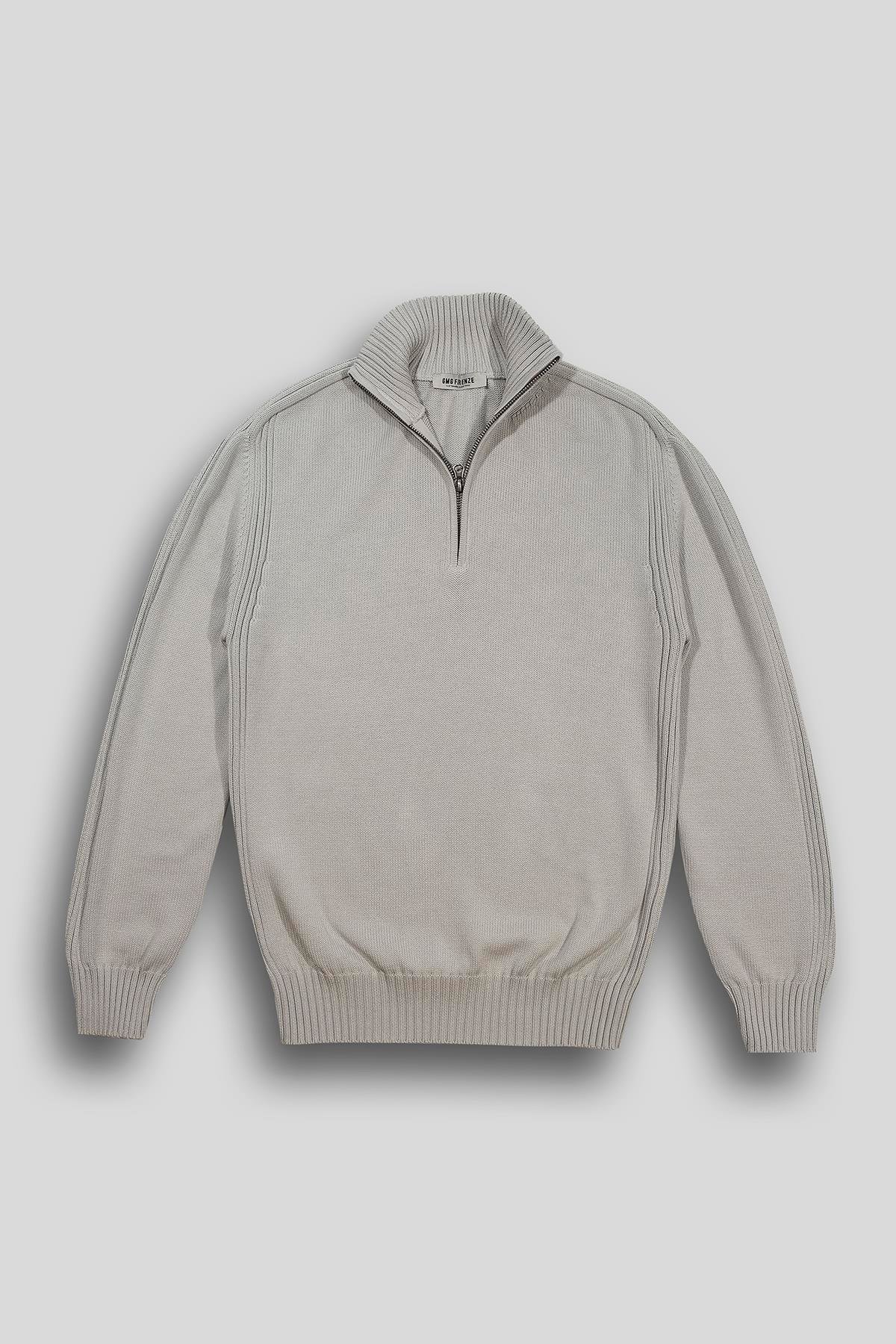 Dik Yaka Patı Fermuarlı %100 Pamuk Yıkamalı Erkek Kazak (GU24MFW04019-25W)