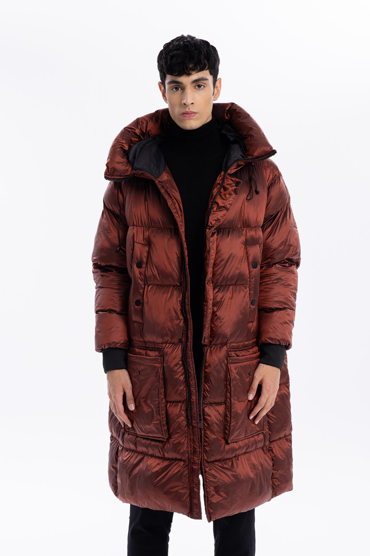 Kapüşonlu Uzun Casual Erkek Kaban (GU24MFW05014-25W)