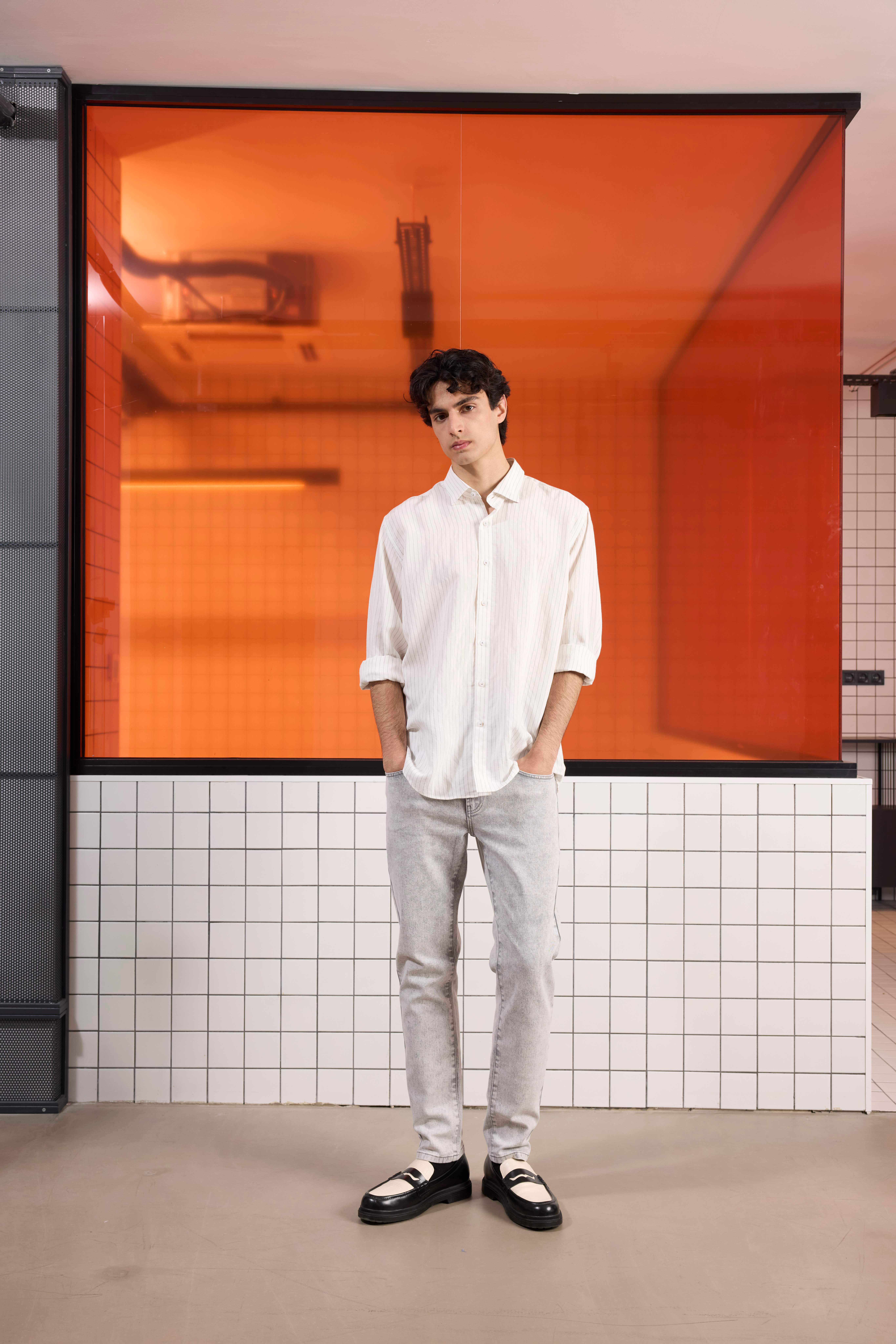 Oversize Çizgili Modal Erkek Gömlek (GU25MSS02218-25W)